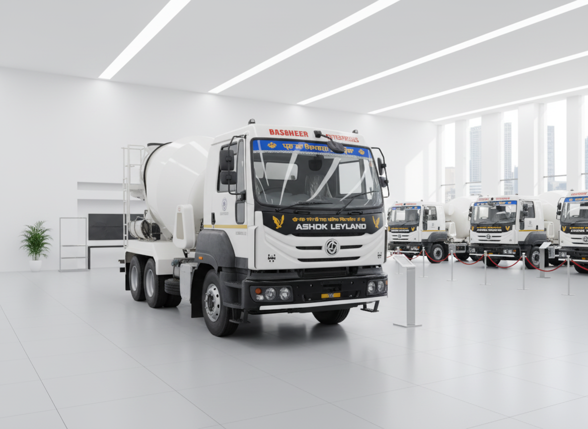 A Transit Mixer is a specialized truck used to transport ready-mix concrete from the batching plant to the construction site while keeping it in a continuous mixing motion. Equipped with a rotating drum, it ensures the concrete remains fresh, workable, and uniform during transit. Transit Mixers are essential for delivering large volumes of concrete efficiently, especially to projects located far from the mixing plant.